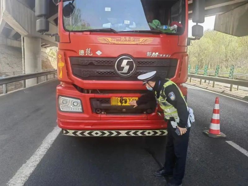 4月11日下午,在顺沙路神牛环岛附近,昌平交通支队马池口大队民警发现一辆货车前部号牌存在异常,号牌的全部数字均“无颜色”,随即示意驾驶员停车接受检查。