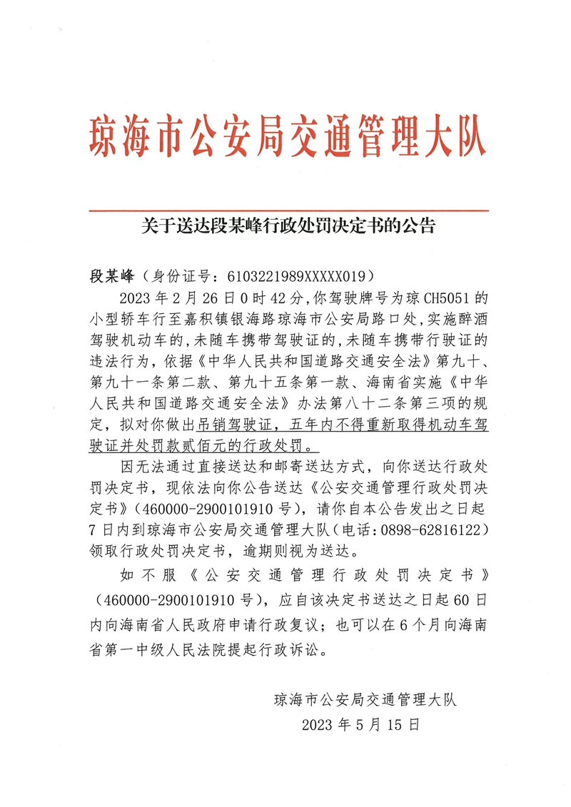 上一篇:关于送达欧某亲行政处罚决定书的公告