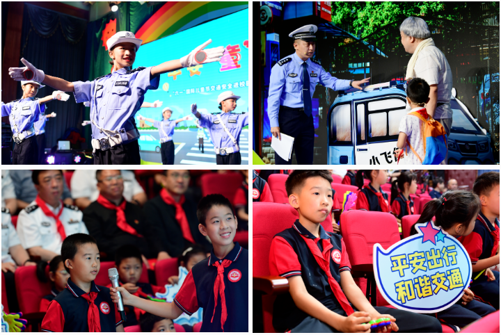 在室内活动现场,由首都警官乐团与枫丹实验小学小交警队展演《交通安全手势操》引来观众的阵阵掌声,报告剧《小交警日记》展现了枫丹小学六年来小交警们亲自参与维护学校门口交通秩序的点点滴滴,小品《告别,小飞侠》基于真实的事故案例,剖析了违规电动三四轮车存在的安全隐忧,倡导孩子们不乘坐老年代步车,动员社会和家庭提前告别老年代步车,共同营造安全、有序、文明的交通环境,在活动现场,与会领导共同启动了在全市小学生中发起的“我是我家小交警”活动,学生们将以“小手拉大手”的方式,在日常交通生活中提醒家人们拒绝不安全不文明的交通行为,通过一个学生带动一个家庭,辐射整个社会,共同守护出行安全。
