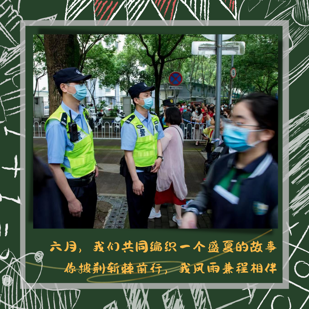 高考首日,上海公安机关共出动3000余名警辅安保力量,为全市100余个考点、5万余名考生保驾护航,做好“绿色”护考工作。考场内,少年们奋笔疾书,书写着青春的答卷;考场外,守护者的严阵以待、家长们的翘首以盼,定格了夏天的最珍贵的瞬间。第一波风”警“照出炉,明日继续“闯关”!政法君全力护航,陪你勇敢探索美丽新世界!