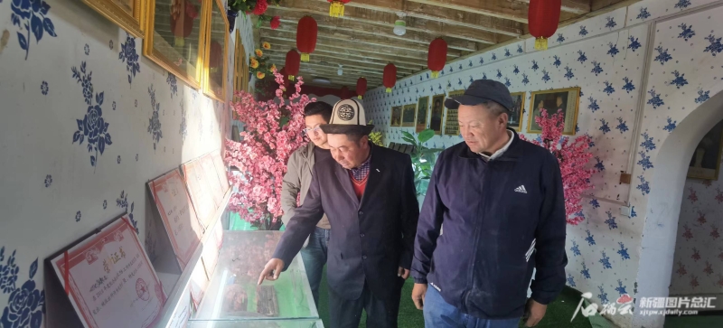 在吐尔地家中,他专门腾出一间房,打造成红色护边博物馆,将几十年来他们一家三代戍边巡边的奖状、奖章、荣誉证书、照片以及父辈巡边路上用过的马鞭、水壶等物件都陈列出来,供人们参观。