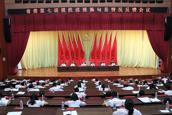省委第七巡视组副组长普翠琼及有关人员;省纪委监委相关监督检查室负责人;保山市纪委监委、市委组织部有关负责人;施甸县委、人大、政府、政协领导班子成员,法院、检察院负责人出席会议。施甸县委巡察办主任、巡察组组长,县直各部门主要负责人,各乡(镇)党委书记等列席会议。