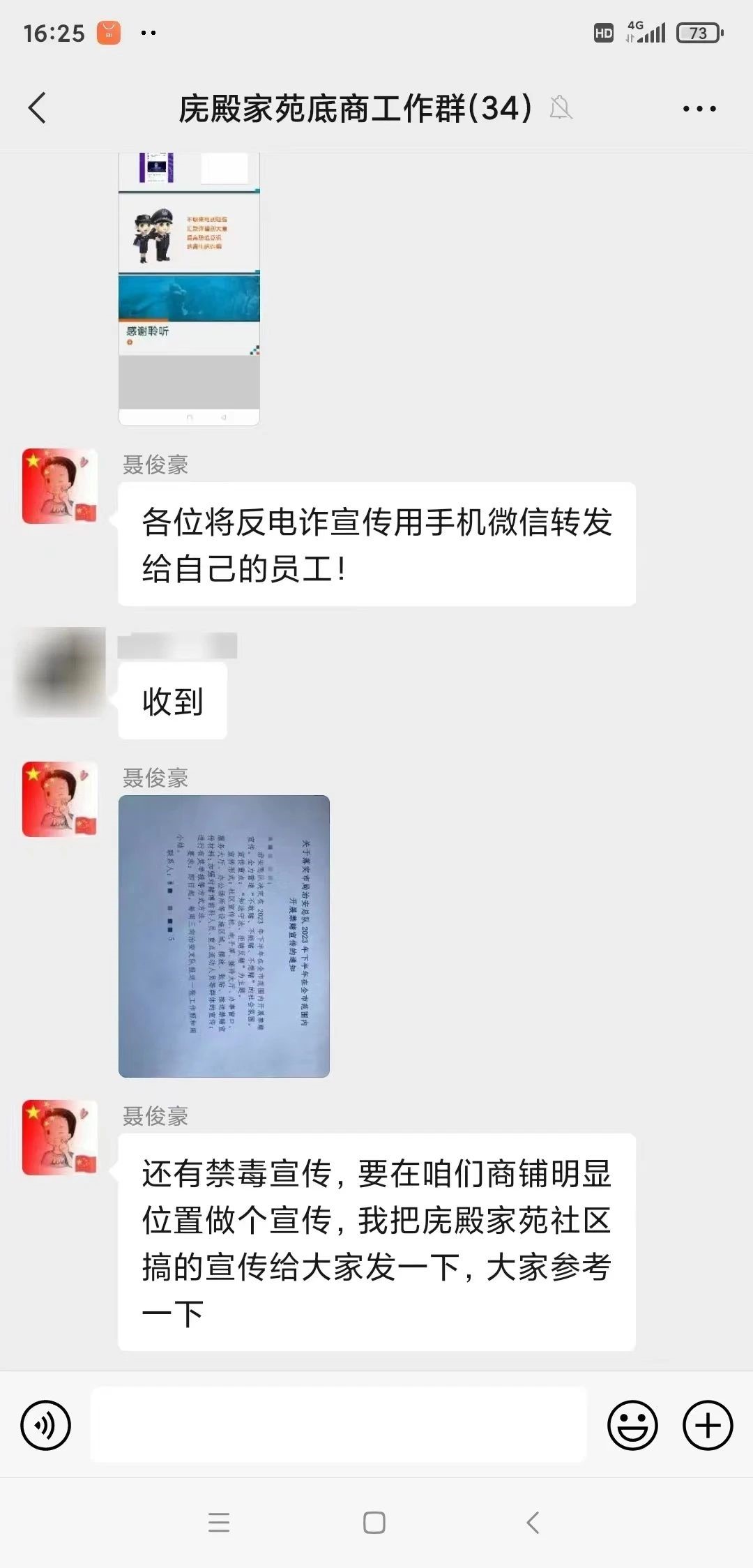 “我加入了21个微信工作群,日常的反诈知识推送都在同步开展中,不曾有过一次遗漏。我们经常接到辖区企业、商户和群众发来的类似求助线索,都是第一时间为群众进行解答,如果感觉情况不对,马上登门核实。这些措施,让庑殿家苑社区电信诈骗案件的发生率比原先下降了20%。”社区民警聂俊豪介绍。