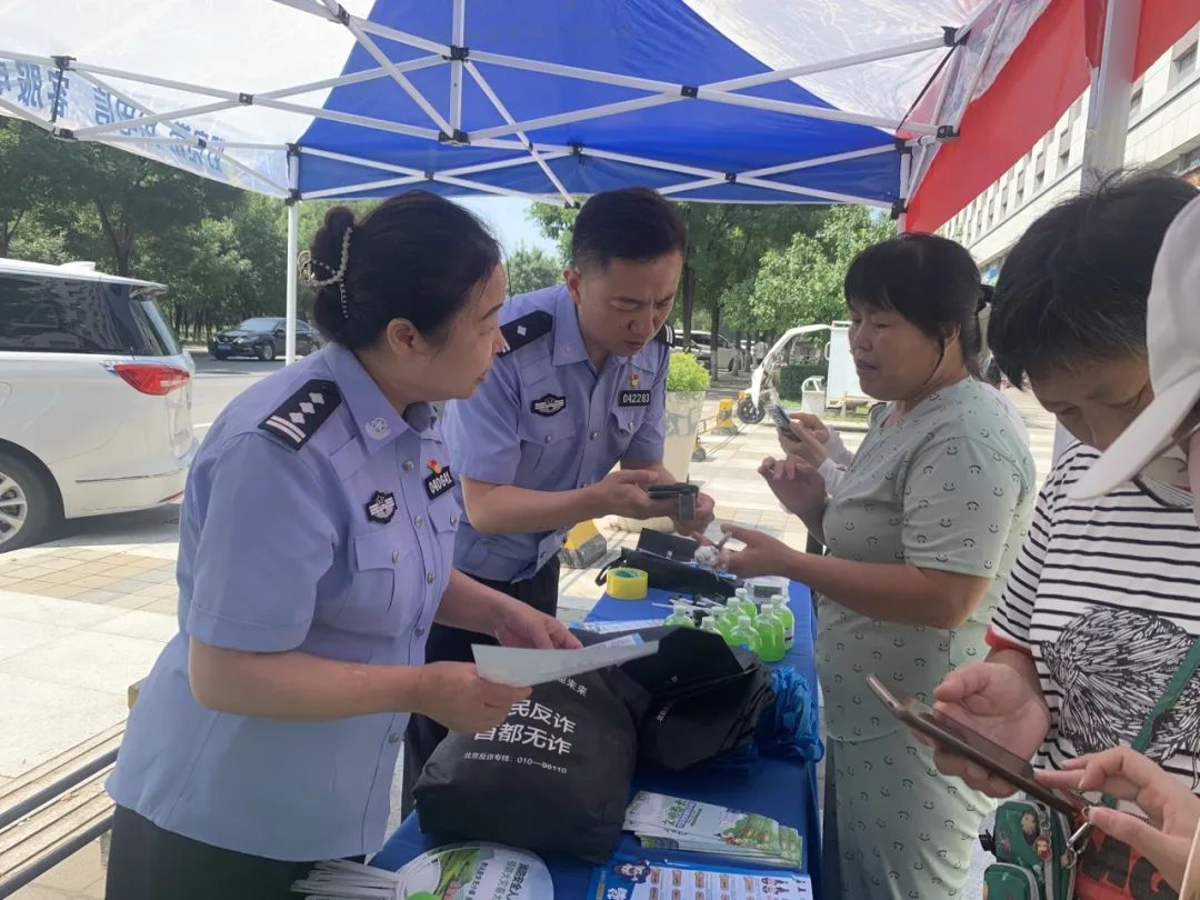 丰台分局反诈中心会同各派出所联合街道、社区,广泛动员群众、组织群众、凝聚群众在商场、超市、商业街摊点等群众纳凉聚集区域宣传讲解电诈防范知识,不断提升广大群众的防范意识和安全意识。