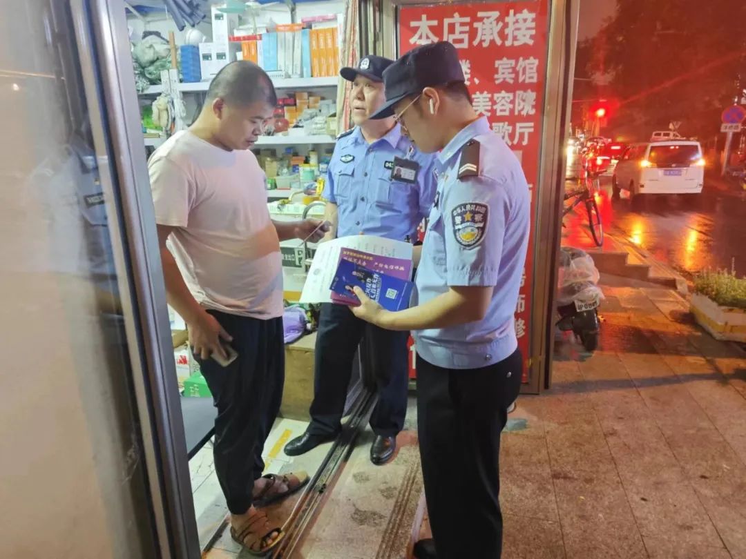 夏夜行动期间,全区公安派出所加大对大型综合体、餐饮娱乐等重点区域和“九小场所”安全隐患排查的同时,向商户发放反诈提示卡片,张贴反诈海报,唤醒防诈意识。