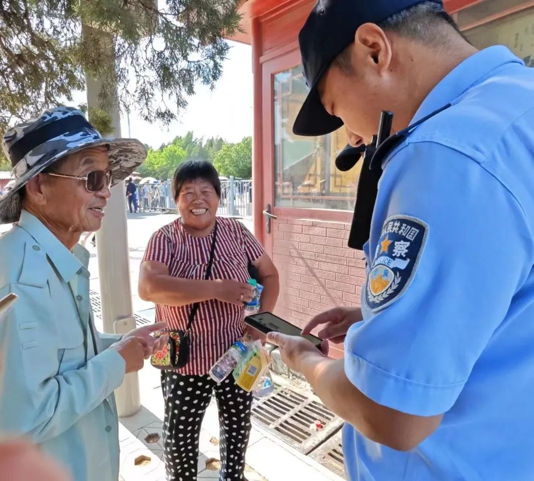烈日下,汗水把塔京伟的警服浸透了,但他和蔼的笑容、准确的回答,让焦虑、徘徊的游客有了一份安心。