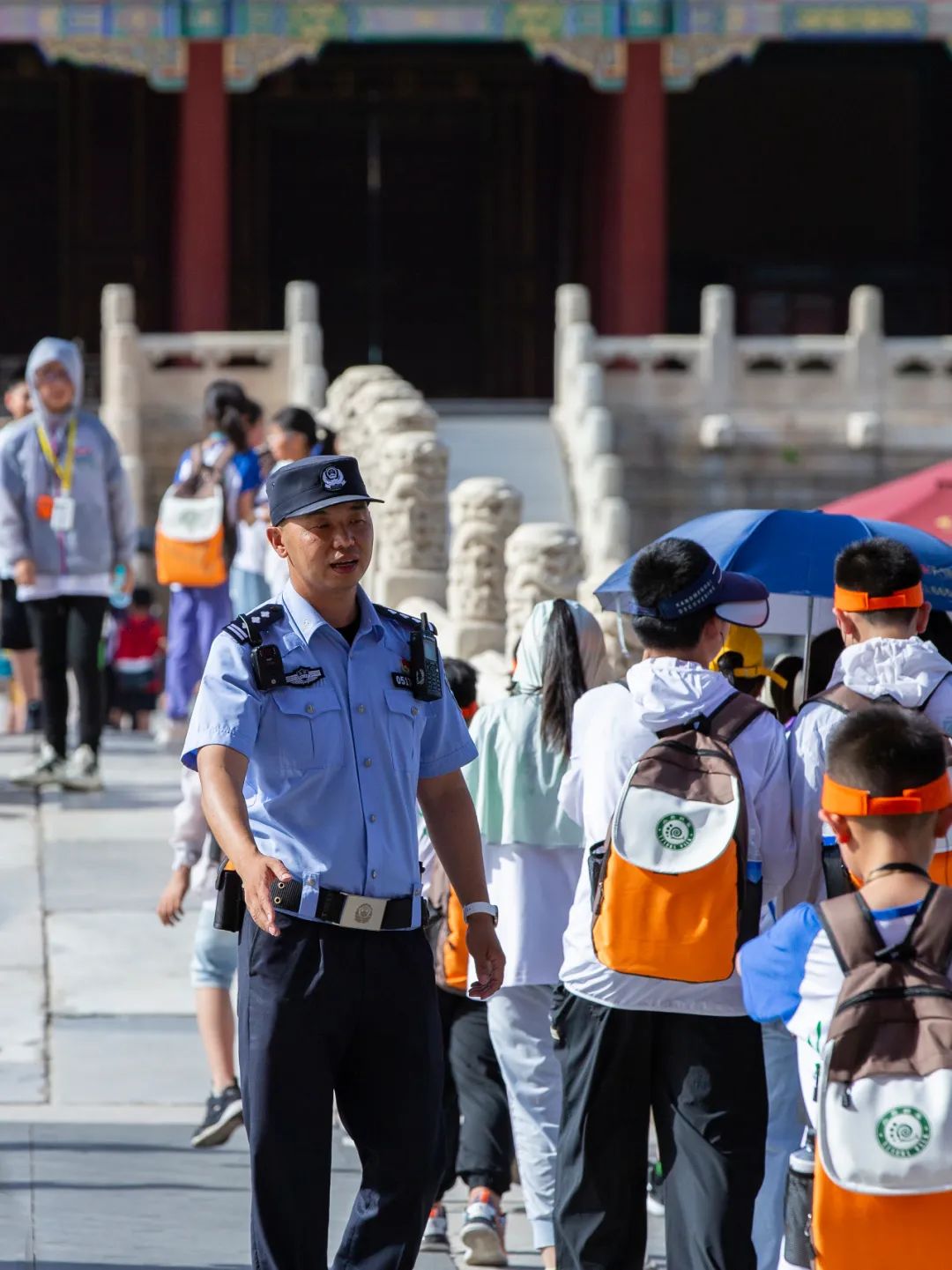 进宫,看最美的景色,也能看到最美的“警”。在这里,北京市公安局天安门地区分局故宫派出所民警为民服务的步履从未停歇。他们迎着灼人的热浪,守护着这座城,守护着来来往往的人。