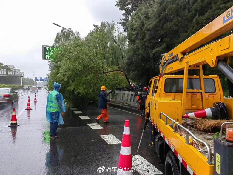 7月30日一早,左安门桥上,路侧树木因大雨倾倒,占压二环主路,影响车辆通行。交管局执勤民警迅速采取临时封闭车道措施,同时协调园林绿化部门开展清理工作。早8时,交通恢复正常。