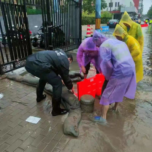 7月30日上午,北京雨量增多。朝阳分局垡头派出所民警正在与防汛部门工作人员一道,进行紧急排水工作。