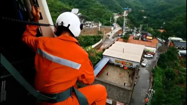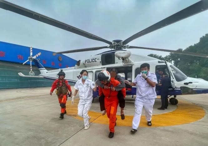 8月2日,警务航空总队机组排除能见度低、无降落场地的困难,单轮降落悬停,成功从昌平韩台村将6名受伤群众转运至安全地带,由医护人员接力送往医院救治。