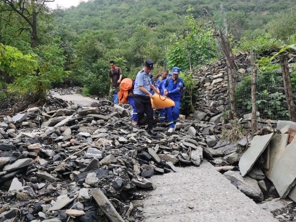 8月6日下午,周口店派出所社区民警谢辉龙在葫芦棚村走访了解群众受灾情况时,接到村民赵女士打来电话。对方称其表弟突发疾病,腿部瘫痪,无法下山。因道路被暴雨冲毁,救援困难,民警迅速联系蓝天救援队和120急救人员赶到现场,共同上山救援。山路被毁,民警和救援人员用担架固定好伤者,沿着碎石遍布曲折蜿蜒的小路,缓慢地向前行进着。到达山下后,120救护车立即将伤者送往医院救治,经过及时治疗,李先生脱离生命危险。赵女士紧紧拉住民警的手说道:“谢谢你们救了我弟弟一命,谢谢!”