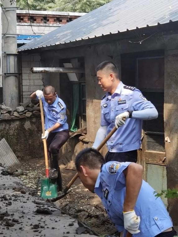 除了积极救助村民群众,重建家园工作也在稳步进行中。民警们奔走在辖区各地清理淤泥杂物、疏导道路交通。一个个清洁、整齐的家正在重现。