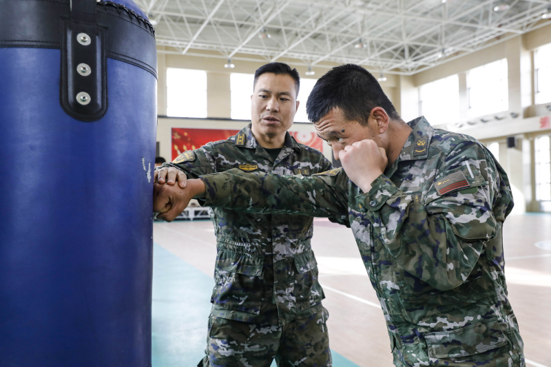 对他来说,训练已经变成一种生活习惯。有时候他一边跟家人视频通话,还一边徒手击墙,锻炼拳头。双指单臂俯卧撑是他每天的“必修课”。训练场上的一招一式,都关系到实战时的生死存亡,也给成林留下大大小小11道伤疤。