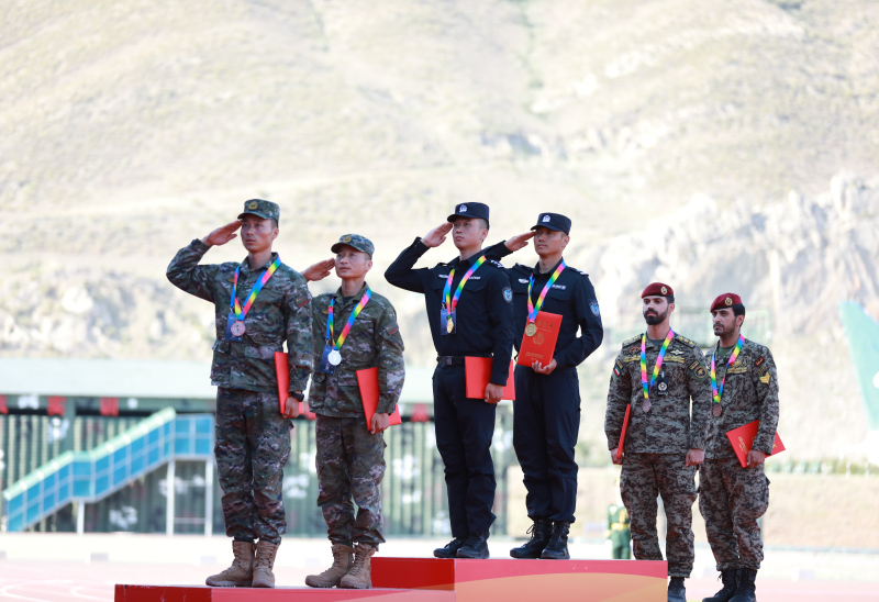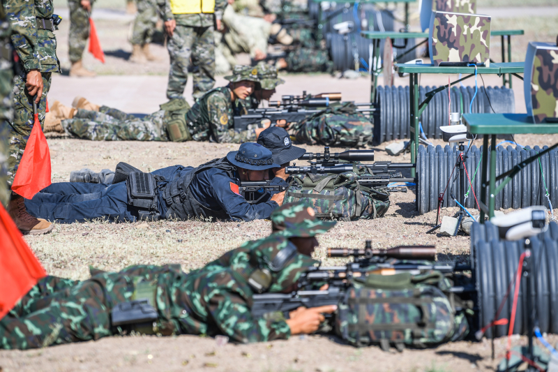 7月15日至18日,马维龙代表中国公安特警,与世界各地选手及中国人民解放军、武警部队选手一同参加“锋刃-2023”国际狙击手射击竞赛。(左一为马维龙)。乌鲁木齐市公安局特警八支队供图
