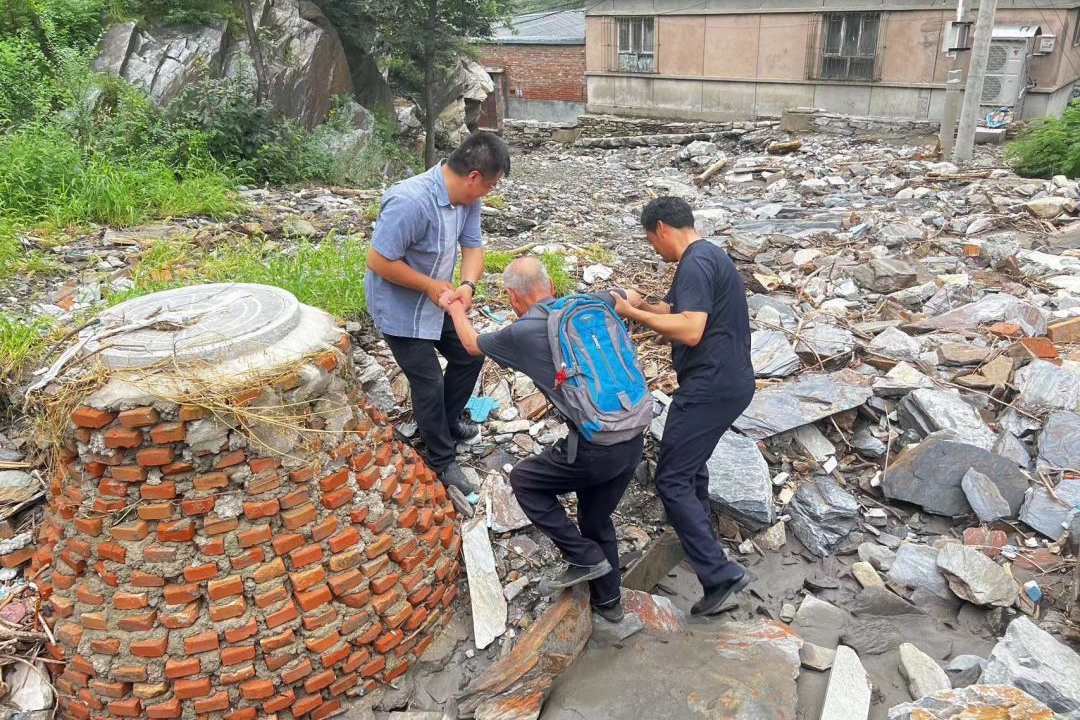 洪灾让山村和外界断联后,周口店派出所民警驱车突破山路上的障碍,努力与村子取得联络。在良各庄村安置点,常保林老先生73岁,刚刚做完心脏搭桥手术,他的老伴周淑英大娘一直牵挂家里。只听有村民上来说:“大娘,不用担心,有政府在,家就在!”“对,你不用怕,这么多人,我们都在!”