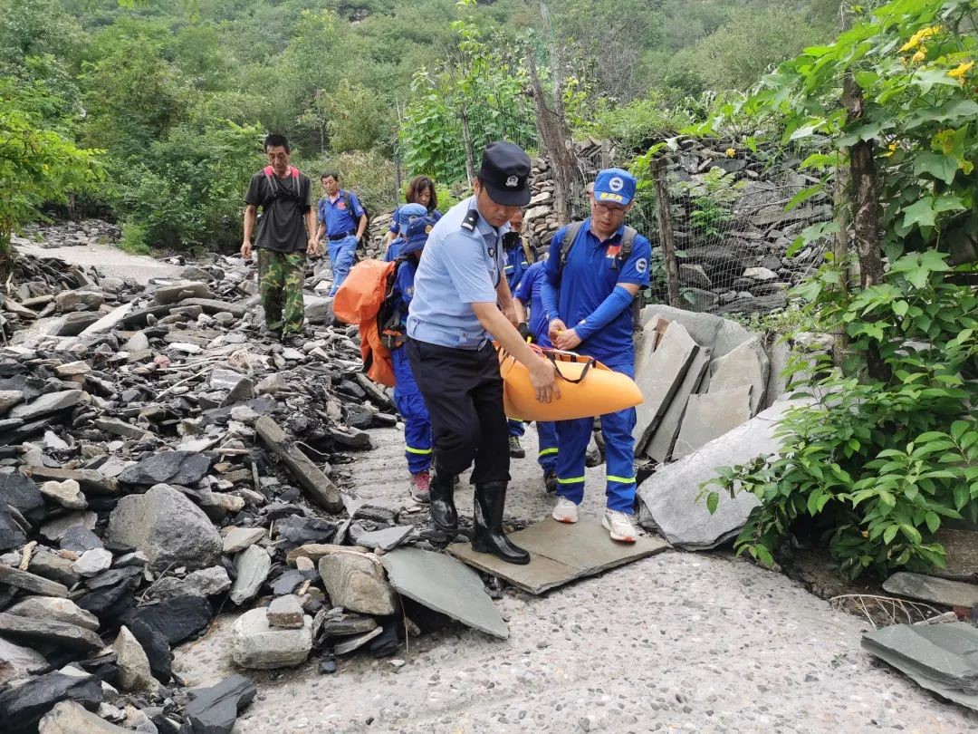 在葫芦棚村,村民赵女士打来电话求助,她的表弟李先生突发疾病,却因腿部瘫痪无法下山。民警谢辉龙立即联系蓝天救援队和120急救车,共同上山进行救援。天气闷热、山路崎岖、遍布碎石断枝,救援队伍克服重重阻碍,终于见到李先生,用担架把他抬下山。经过医院及时治疗,李先生脱离了生命危险。