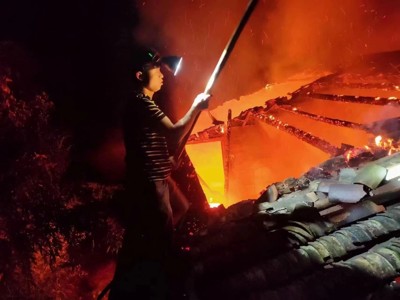 去年6月7日凌晨1点,华南村上湖组一户留守聋哑老人家突发大火。老人邻居通知了刘小年。他得知后立即拨打119,并开车直奔火场。失火房屋是木结构老式住宅,在一楼搜寻一遍后,刘小年没有找到老人。考虑到老人有听力障碍,此时可能仍在屋中熟睡,他不顾自身安全,奋不顾身地冲上二楼,果断将窗户玻璃敲碎并爬进屋内,将熟睡中老人救出。确保老人安全后,火势向屋外蔓延,刘小年又召集村民灭火,并协助随后赶来的消防官兵共同扑灭大火。