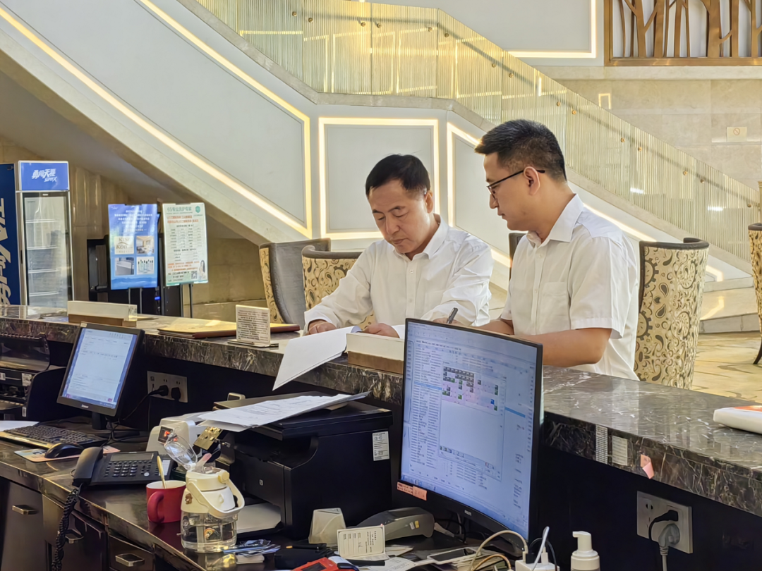 图为省纪委监委监督检查组通过查看被检单位公款消费账单等方式,筛查是否存在违规吃喝等“四风”问题。