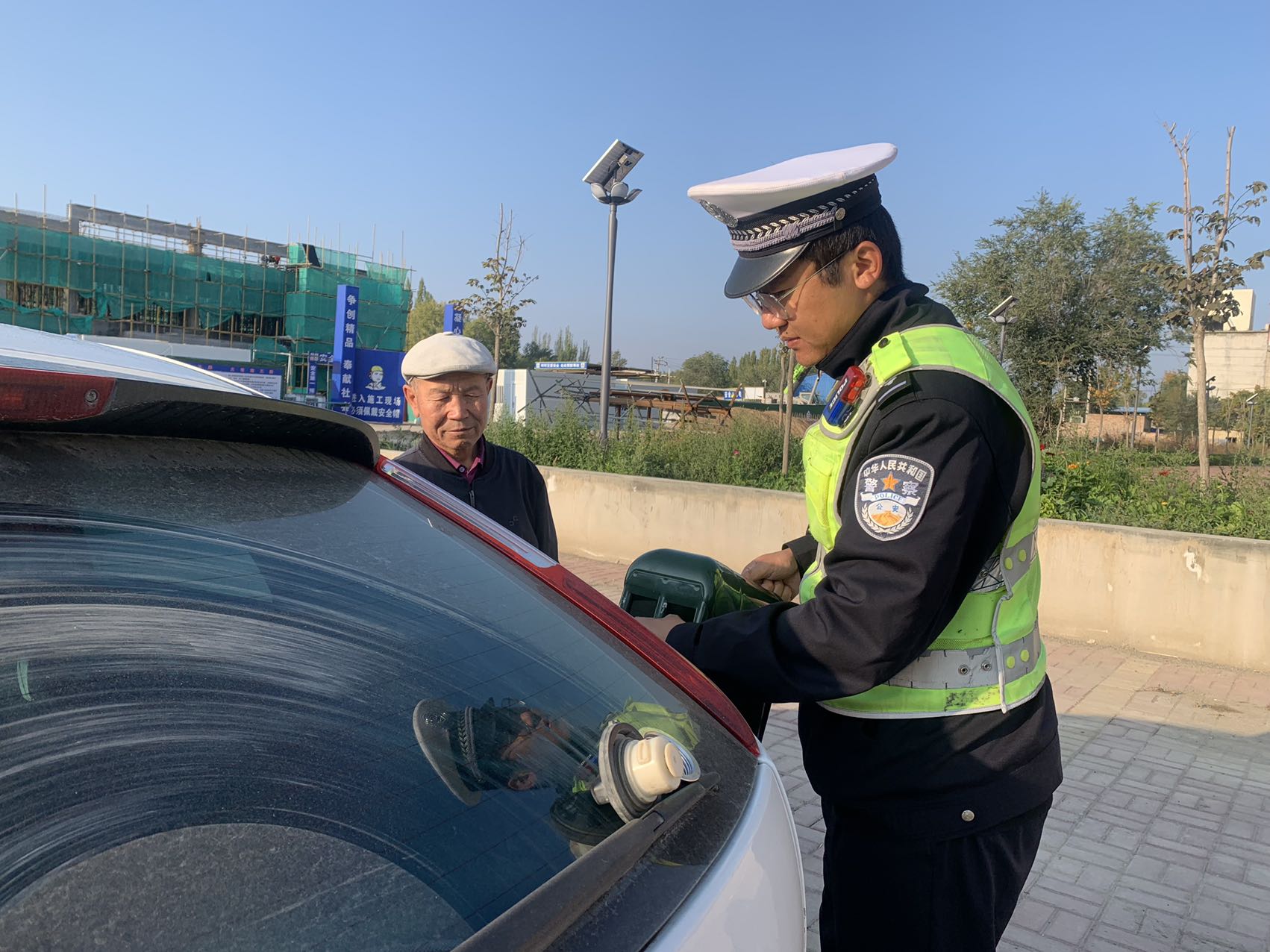 16时,我与同事巡逻至塔秀乡振兴东路时,发现一辆小型客车停在路边,驾驶人站在车旁向我们招手,我赶紧换上白色警帽上前询问情况。