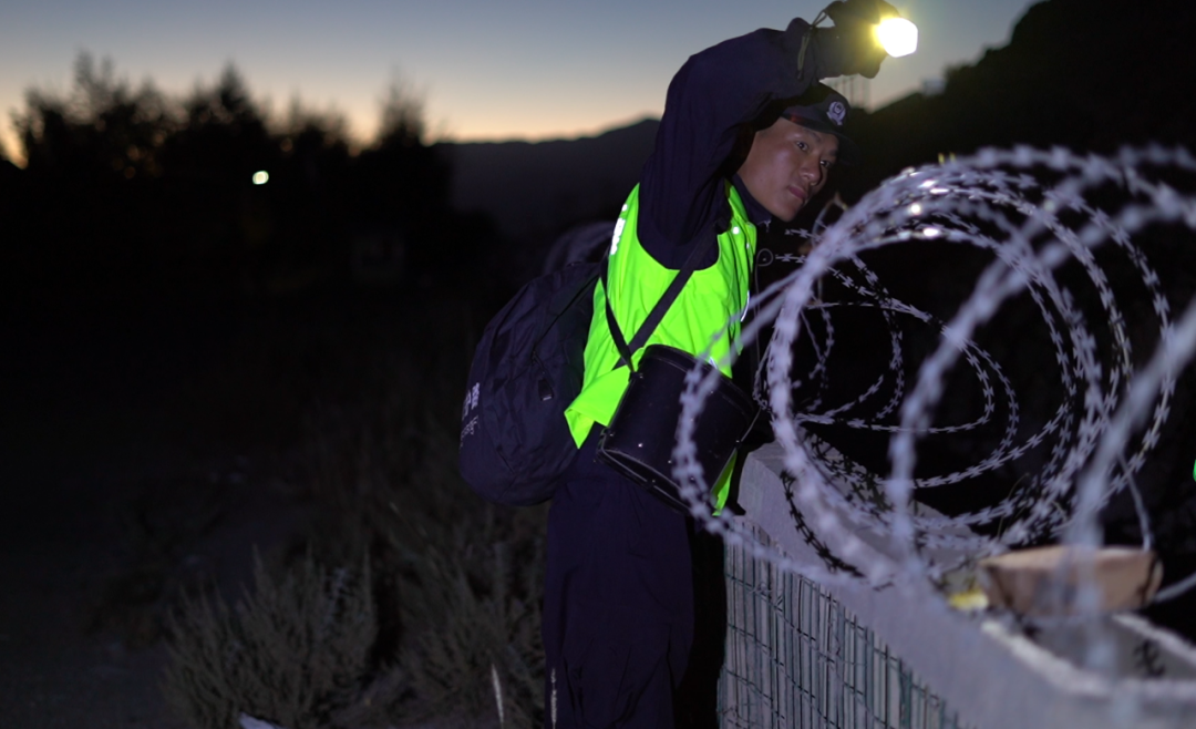 此时,达瓦次仁已来到山顶的执勤点进行交接从交班队员眼睛充满的红血丝可以知道他一晚没睡