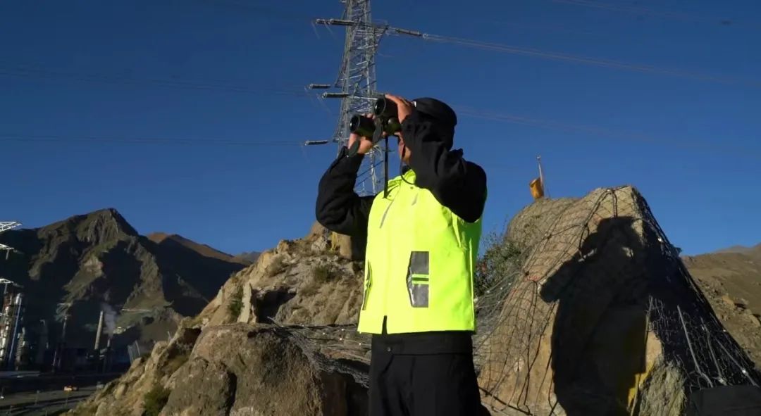 达瓦次仁的执勤任务就在山顶这个2平米的石头上他要随时用望远镜查看铁路沿线的情况并汇报