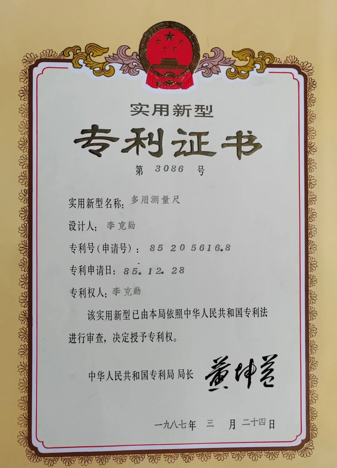 经过多次现场勘查工作,李克勤发现刑警队的人手实在太紧张了。各类案件不断,测量步伐的步幅特征,需要三个人配合才能完成步角的测量,测量长度时也需要两人拉卷尺,又慢又不方便。测量高大物体时,如楼房、树木等就更加困难了。于是他就设计了一款多用测量尺,利用三角函数、比例尺等知识,通过一人操作就可以又快又准确地测量出所需要测量的数据。