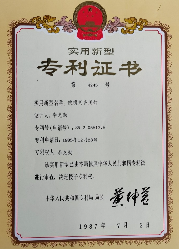 “请专家试验的时候,把灯就泡在水里三天三夜,放到振动台上一直震,又在高低温的环境里……我当时特别心疼。”拿起多用灯,回忆起当时的环境试验,李克勤红了眼眶。20世纪80年代,我国的电力设施系统还不够完善,大部分街道没有灯。对刑警来说,夜晚出现场勘查便成了一件十分困难的事情。李克勤观察到这一问题后,利用下班时间画电路图、制作零部件,为了使各项性能测试达标,他查阅了大量电力、化学书籍资料、询问荧光粉生产厂家、绝缘测试……他将全部心血倾注到科研中,终于在一年后研制出了便携式多用灯,除了照明功能外,多功能灯还具有短波紫外功能,撒上荧光粉以后,可以显现指纹。