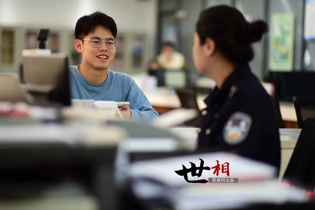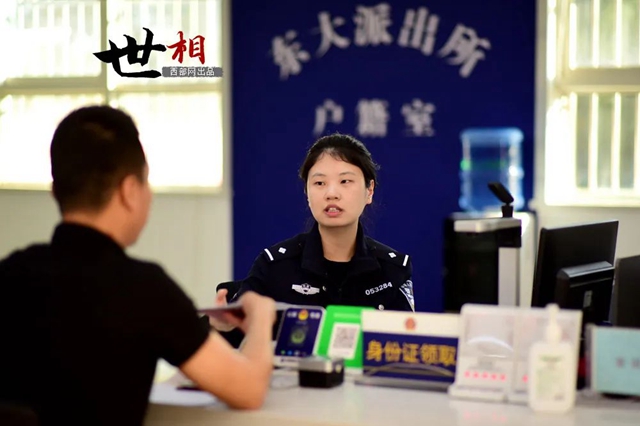 一开始,99年出生的赵杨杨听说自己被分到东大派出所有些失望,这里不仅距离城里的家太远,而且听说是乡下,只会说普通话的她对未知的工作岗位有些惧怕。作为东大派出所最年轻的户籍警,赵杨杨被派驻东大街道办事处服务大厅专门处理辖区的户籍相关业务。每天都和老百姓打交道,有几次因为听不懂方言,与来办业务的百姓沟通不畅,被误解和埋怨,她也委屈地哭过鼻子。但是经过一段时间的学习和适应,赵杨杨不仅把业务办得熟练又快速,还能和周围的乡里乡亲打成一片,大爷大妈们都很喜欢这个城里来的姑娘,所里的老同事都佩服得不行——小赵这业务水平“进化”得太快。
