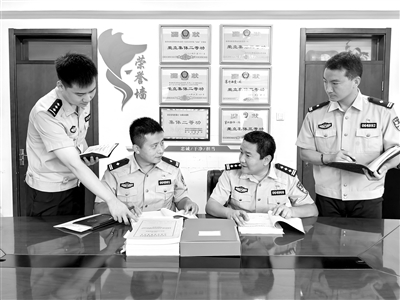 图为北京市纪委监委驻市公安局纪检监察组干部正在讨论案情。刘建平 摄