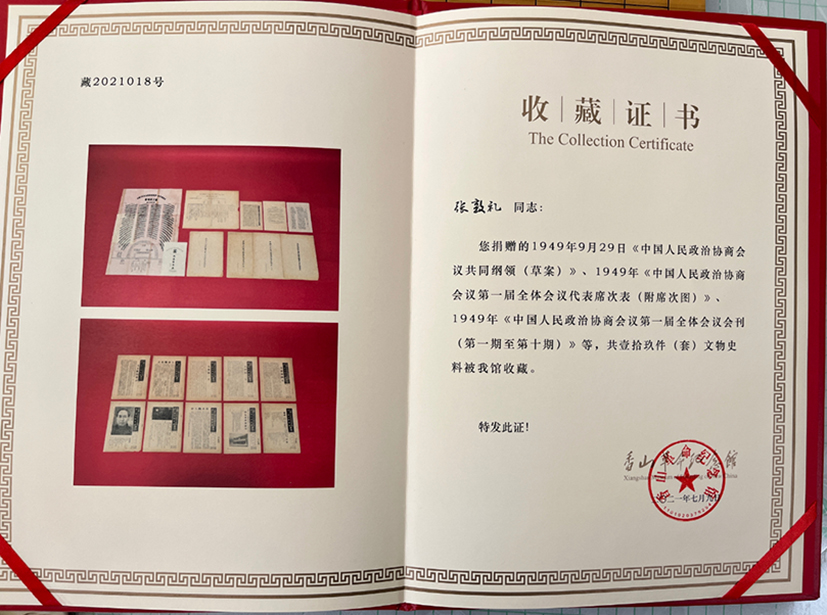 北京市廉政教育基地——香山革命纪念馆里,陈列着《中国人民政治协商会议第一届全体会议代表席次表》《中国人民政治协商会议第一届全体会议会刊》等珍贵党史资料,这些资料曾被张敦礼妥善保存了70多年。
