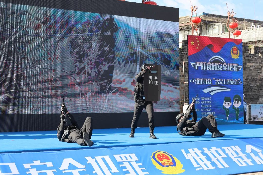 现场活动精彩纷呈,与会者共同观看了宣传片,了解过去一年全省公安机关打击食品违法犯罪工作成效;长汀县食品行业协会领导带领相关食品企业发出食品安全倡议书,共同宣读《食品安全倡议书》;长汀县公安局编排的节目“最美警色”展现了公安部门打击食品犯罪的飒爽警姿;卫健部门专家讲解了食品安全预防知识,现场普及食物中毒如何第一时间开展救助,食品安全有奖问答环节,更是把宣传活动引向高潮。