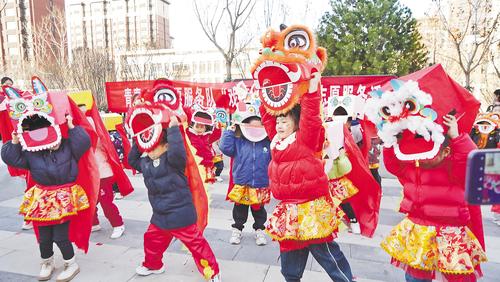 1月5日,雄安新区青禾幼儿园开展了“戏舞龙 传文化”志愿服务活动,幼儿园小朋友们在老师的带领下走进社区、公园,为居民带来舞龙舞狮表演。 本版图片由省文明办提供