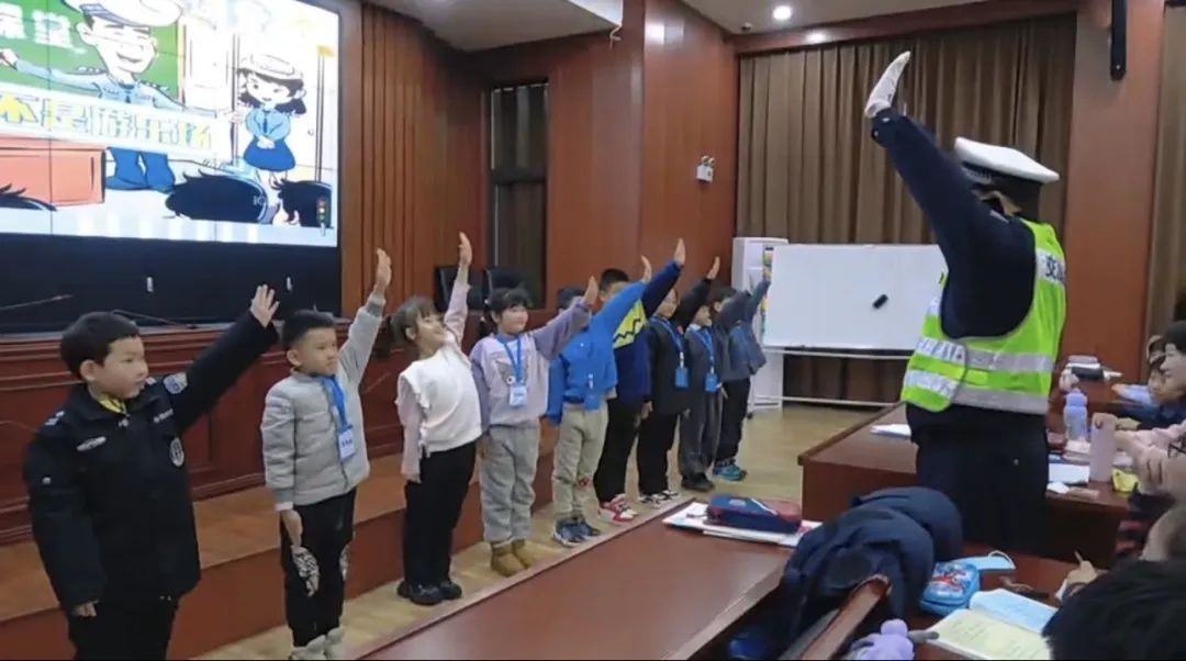 小朋友们参与“沉浸式”儿童交通安全宣传教育活动。交警针对随意横过马路、在道路上追逐打闹、如何看懂信号灯、如何安全过马路等常识,向小朋友们进行了详细讲解。萌娃们化身“小交警”学习交通手势操,进一步了解了交通标志、红绿灯、人行横道的作用,加深对交通安全知识的理解,感受文明守法出行的重要性。