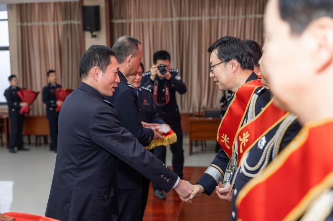 “现在我代表老一辈监狱人将警旗交给你,希望你们再接再厉,再创佳绩!”“我们一定不负重托、接续奋斗、再立新功,请您放心!”警旗交接,象征着使命、责任和荣誉的传承,义城监狱的优良传统精神将代代相传、生生不息。