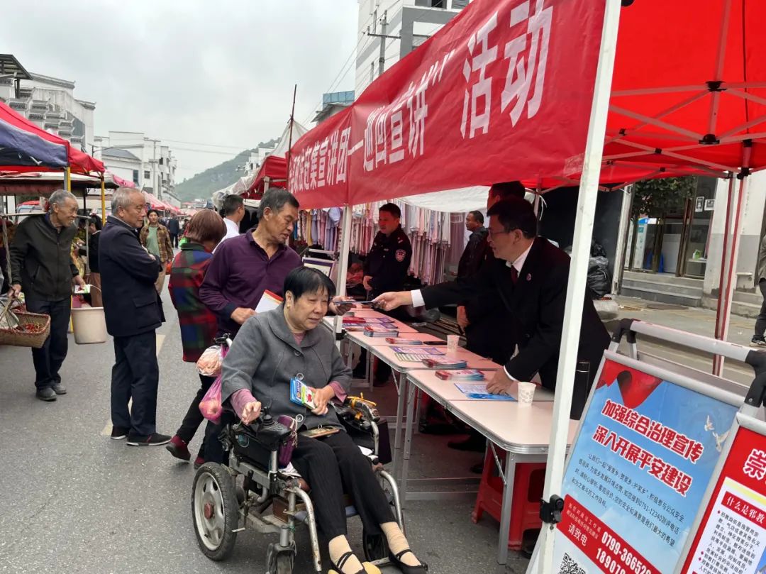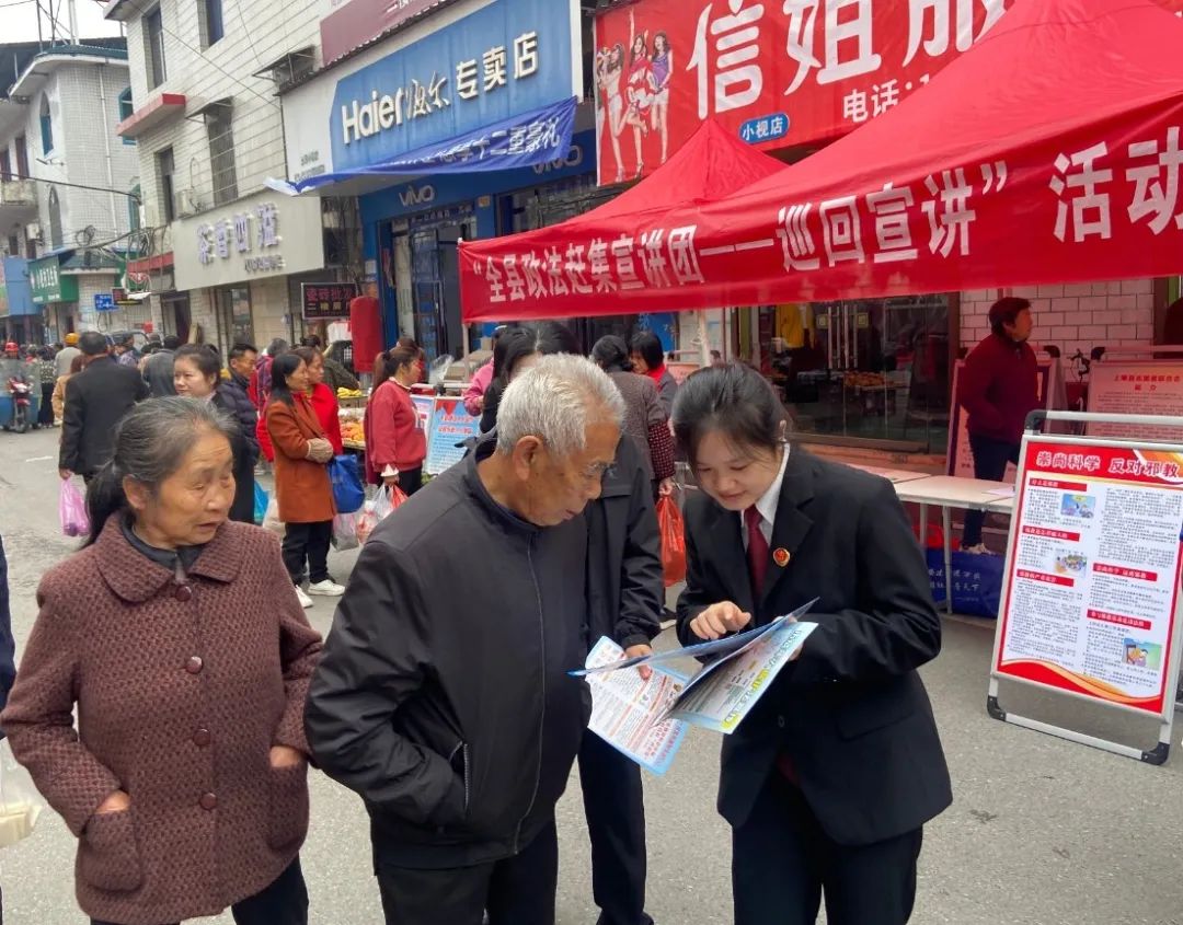 上栗县人民检察院结合各乡镇村民赶集的民俗习惯,采取“赶集+屋场贴心会”的普法形式,从炎热的夏日,到寒冷的冬季,为乡村、集镇的群众送上法律服务。 春风化雨 ——三八维权普法 为进一步提升妇女儿童法治意识和依法维权能力,上栗县人民检察院联合县妇联、县法院走进上栗镇榉溪村开展“三八”维权周普法宣传活,为基层群众带去司法服务。 干警们结合工作实际,用生动鲜活的案例、通俗易懂的语言向群众宣传、讲解了未成年人保护法、预防未成年人犯罪法、家庭教育促进法、妇女权益保护法等与妇女儿童生活密切相关的法律知识,介绍了检察机关妇女儿童权益保护相关职能,并解答群众法律疑问,引导妇女儿童运用法律武器维护自身权益。 如火热情 ——助力平安建设 安全生产,事关大局。上栗县人民检察院分别在太坪村、石岭村、洪东村、湖塘村开展打击烟花爆竹领域非法生产专题屋场贴心会。 硕果满载 ——服务法治校园 上栗县人民检察院联合县教育局开展“青栗护未、法伴青春——法治第一课”宣讲活动,为全县初一新生系好“第一颗法治扣子”。 针对初一新生年龄特点和心理发育特征,青栗护未队成员围绕“未成年人刑事责任年龄、涉未成年人常见违法犯罪预防”等内容进行讲解,提升青少年法治意识和自护意识。 冬日暖阳 ——照亮百姓的心 冬日的乡镇街道依然热闹非凡,检察干警们早早来到集市支起“法治早市”摊位,为赶集群众送上“法治礼包”。 赶集群体以老人为主,干警用乡言乡语向他们普及关于养老诈骗的常见手段和预防方式,提醒老年人要提高警惕,不贪小便宜、不轻易转账。 |