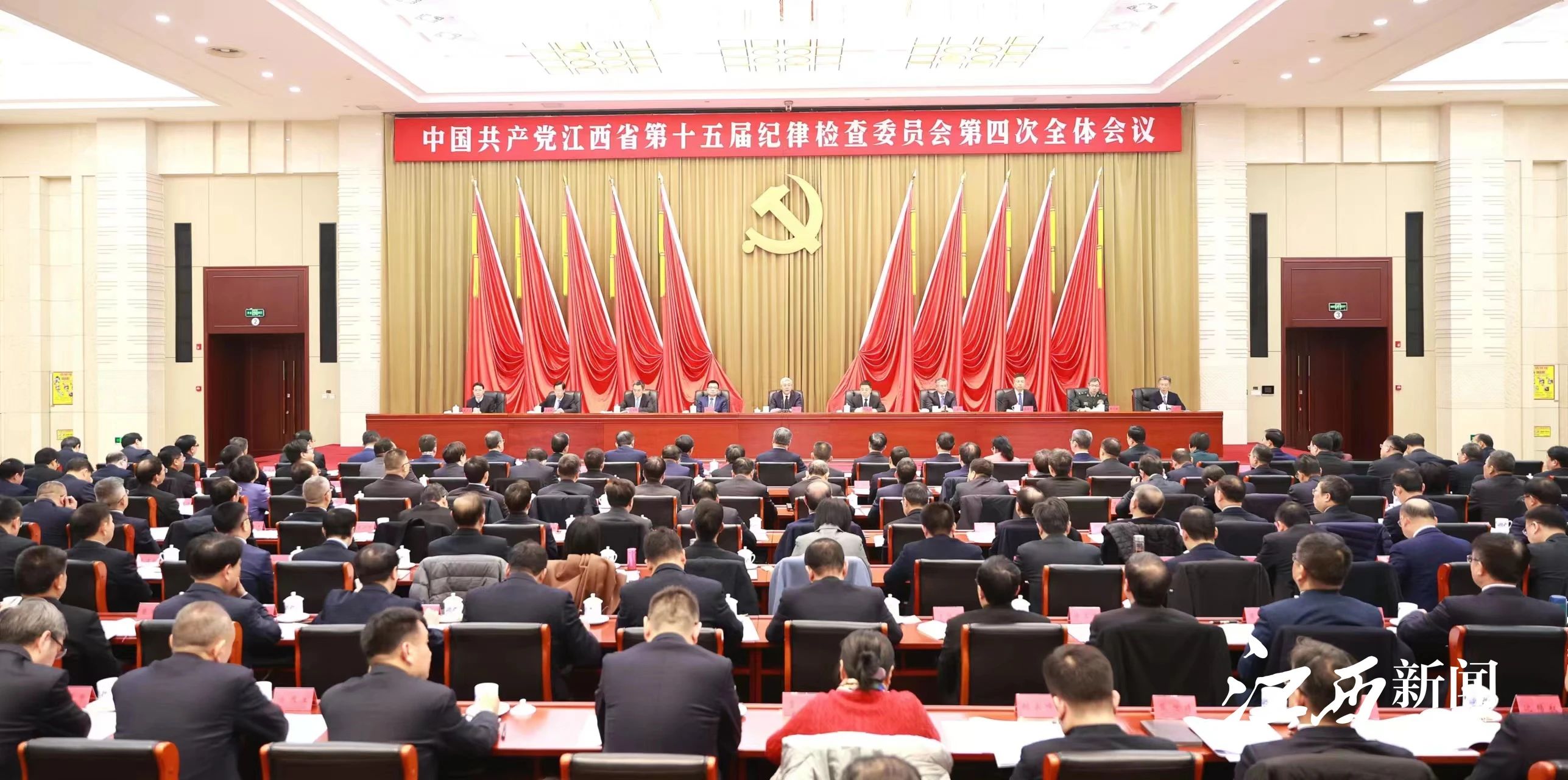 1月15日,省纪委十五届四次全会召开。省委书记尹弘出席并讲话,他强调,要深入学习贯彻习近平总书记关于党的自我革命的重要思想,以永远在路上的坚韧和执着,坚持标本兼治、系统施治,一体推进不敢腐、不能腐、不想腐,坚决打赢反腐败斗争攻坚战、持久战,持续营造、优化政治生态,为奋力谱写中国式现代化江西篇章提供坚强保障。
