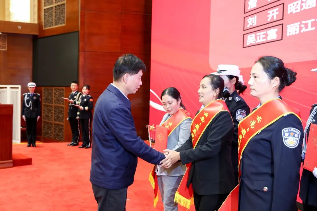 仪式上,宣读了云南省委宣传部、省委政法委《关于授予马锐萍等同志云南2023年度“最美政法干警”称号的决定》,授予昆明市城郊地区人民检察院第一检察部主任马锐萍等10名干警云南2023年度“最美政法干警”称号,追授临沧市沧源县人民法院原党组成员、执行局局长鲍卫忠等4名因公牺牲干警云南2023年度“最美政法干警”特别致敬奖,授予保山市腾冲市公安局曲石派出所所长陆卫华等10名干警云南2023年度“最美政法干警”提名奖。