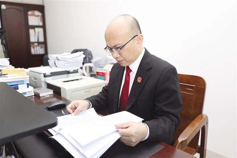 法官林中才在查阅案子卷宗 通讯员杨斌 摄