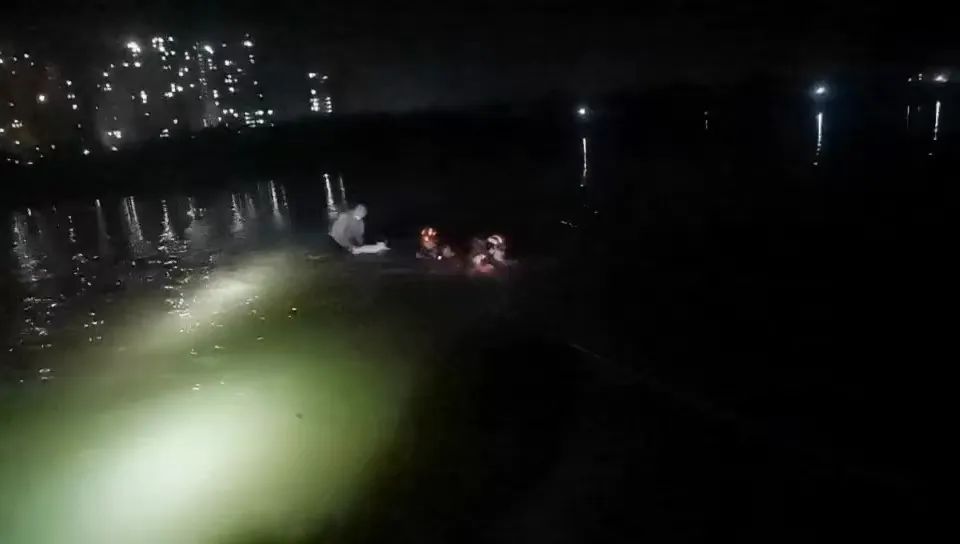 1月13日晚8时13分 永丰警方接群众曾先生报警 他朋友肖某刚和女友分手 晚上喝了酒想不开 跳入了恩江河三桥附近水域 正往河中央水深处走去 企图自杀 希望民警前往救助 接报后 佐龙派出所值班民警 立即联系消防救援队和医护人员 第一时间赶到现场查看情况