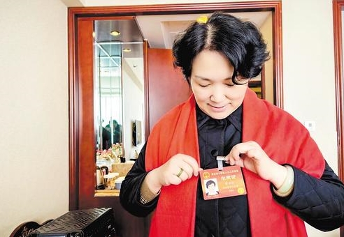 1月19日,崔玉红代表报到后,将出席证佩戴在胸前。 河北日报记者 田 明摄