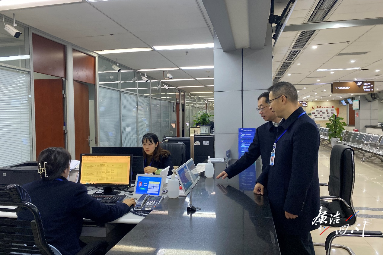 新都区纪委监委驻区行政审批局纪检监察组组长对企业反映社保问题进行督查。(李宁 摄)