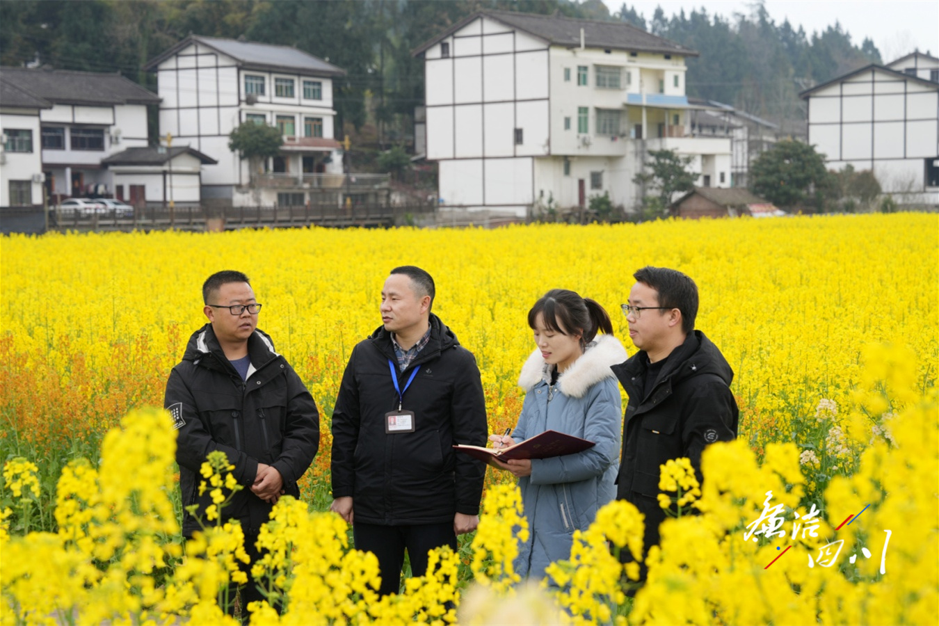 督查组在白衣镇柳州社区走访油菜春管情况收集群众诉求。(王鹏程 摄)