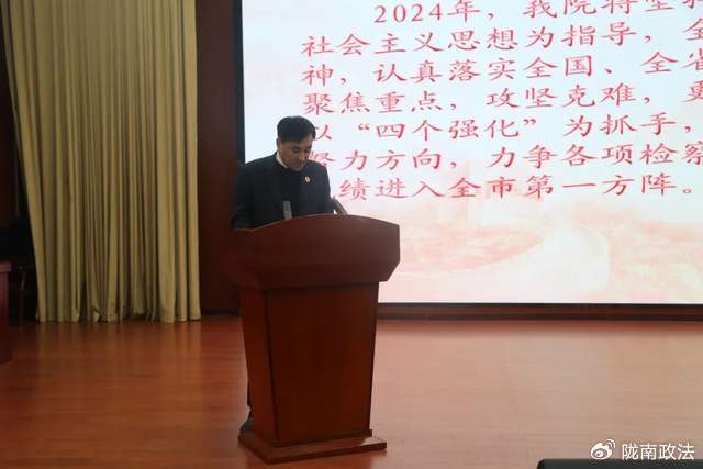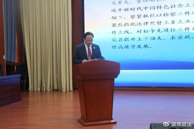 3月4日,陇南市人民检察院召开全市检察长会议暨全市检察机关党风廉政建设会议,全面落实中央、省委政法工作会议和全国检察长会议、全国检察机关党风廉政建设工作会议,全省检察长会议、全省检察机关党风廉政建设工作会议部署,动员全市检察机关以团结奋斗、守正创新、争先出彩,对照上级部署和三年高质量发展规划,深化提升、狠抓落实,以高质效检察履职助力中国式现代化建设陇南实践。陇南市人民检察院党组书记、检察长周元出席会议并讲话。