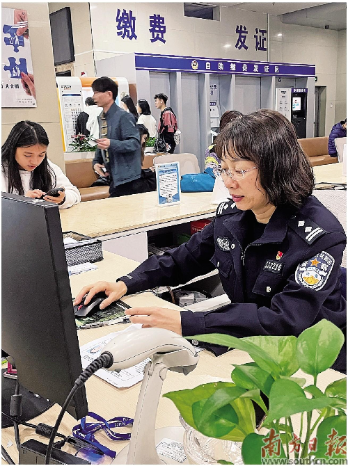 朱雪青1993年5月开始参加工作,先是在派出所负责户籍工作,2008年7月调入出入境管理工作,在服务群众的一线,她一干就是31年。