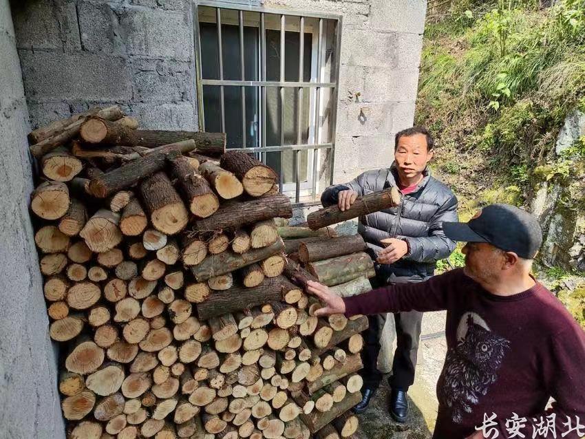 几句寒暄后,覃素国来到屋后,帮助老人整理杂物。屋檐下,堆满了高高的木柴,这些,是春节前覃素国花了两天时间,帮忙从后山砍了背下来的。