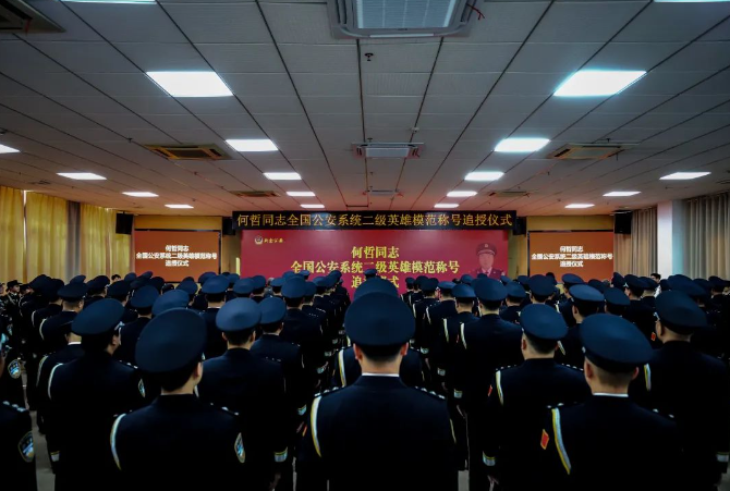 弘扬先进、礼赞英模。3月27日下午,何哲同志全国公安系统二级英雄模范称号追授仪式在分宜县公安局举行,会上,宣读了公安部命令,向何哲同志的家人颁发了荣誉证书和奖章。 为更好地纪念和传承何哲同志精神,新余市公安局党委决定,将何哲同志生前使用的警号052339作为特殊警号予以封存,让何哲同志的精神在新余公安的历史中代代传承。 何哲同志系分宜县公安局森林分局芳山派出所原副所长。2023年9月10日,何哲同志外出工作期间突发心源性疾病,经抢救无效不幸牺牲,年仅37岁。2024年2月,公安部追授何哲同志全国公安系统二级英雄模范称号。 仪式宣读了公安部《关于追授何哲同志全国公安系统二级英雄模范的命令》《关于对何哲同志警号052339予以封存的决定》,现场播放了何哲同志专题片,何哲同志的家属和同事代表,以真挚朴实的发言,追忆了何哲拼搏奉献、竭诚为民的感人事迹。 新余市公安局领导班子成员,分宜县委、县政府有关领导,分宜公安机关领导和民警代表,以及何哲同志的家属参加仪式。 |