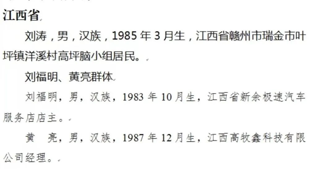 4月2日,中央政法委在京发布2024年第一季度见义勇为勇士榜,共有55位勇士光荣上榜。其中,江西3位勇士榜上有名! 一起来看看他们的事迹 刘涛,男,汉族,1985年3月生,江西省赣州市瑞金市叶坪镇洋溪村高坪脑小组居民。 2023年12月9日19时许,刘涛正在瑞金市象湖镇上坪社区的某商店门口卸车上货物。 突然,他听到车外传来打斗和呼救声,只见一人正挥起刀狠狠地砍向另一人头部,被砍者满头鲜血。 刘涛迅速冲到行凶者面前,拼尽全力夺下刀具,将其制服,并交给赶来的公安民警。 刘福明、黄亮群体 刘福明,男,汉族,1983年10月生,江西省新余极速汽车服务店员工。 黄亮,男,汉族,1987年12月生,江西高牧鑫科技有限公司员工。 2024年1月24日15时许,刘福明正在店里,突然发现不远处网吧冒出了滚滚浓烟,且烟势越来越大,网吧邻近的烤羊肉店铺上面有人正准备跳楼逃生。 刘福明正在琢磨施救办法时,闻讯赶来的黄亮喊道:“我店里有长梯!” 于是二人一起将梯子搬来,二楼逃生的人立即顺着梯子爬了下来。 当刘福明、黄亮二人了解到楼上还有人时,黄亮继续扶着梯子,刘福明则赶紧跑到着火点前方朝楼上大喊:“楼上的人赶紧啊,都往烤羊肉店方向跑,那边有梯子!” 被困人员闻声跑过来,陆续顺着梯子爬了下来,并由刘福明安顿到自己店里暂避。 刘福明、黄亮二人一直在现场开展救援,直到消防救援队伍赶到。