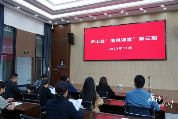芦山县纪检监察干部在“清风课堂”上开展业务研讨。(袁静 摄)
