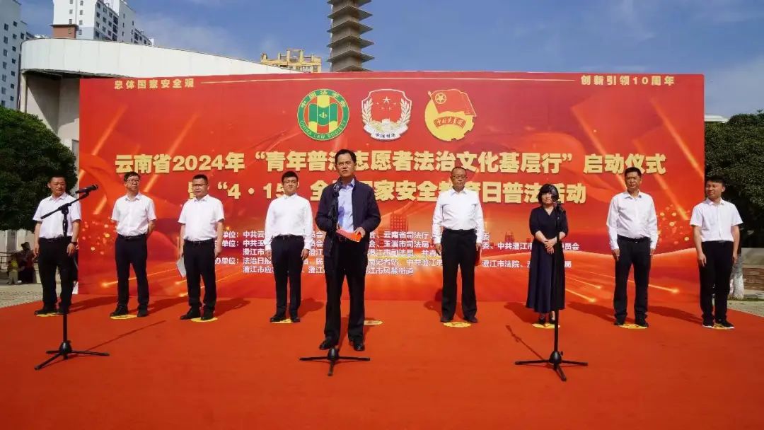4月15日,云南省2024年“青年普法志愿者法治文化基层行”启动仪式暨“4·15”全民国家安全教育日普法活动在澄江市举行。