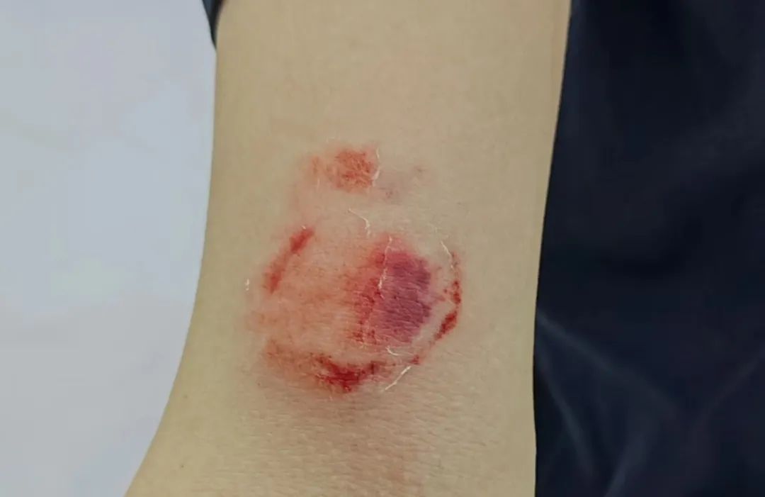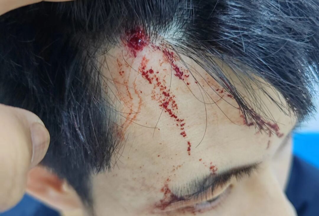 近日 于都警方依法处置 一起袭警案件 抓获犯罪嫌疑人丁某 案情回顾 4月9日19时许 于都县公安局新陂派出所民警在处置一起 家庭矛盾警情的过程中 当事人丁某不仅言辞激烈 拒绝配合民警的工作 还找来一根螺纹钢筋 担心丁某情绪激动之下以此伤人 民警当即上前劝阻 却被丁某用钢筋砸伤额头 右手也被其咬伤 ▲处警民警额头被砸伤、右手被咬伤。